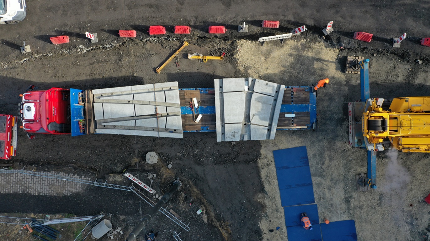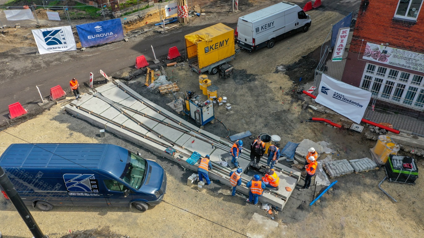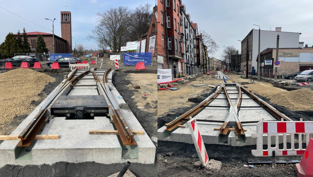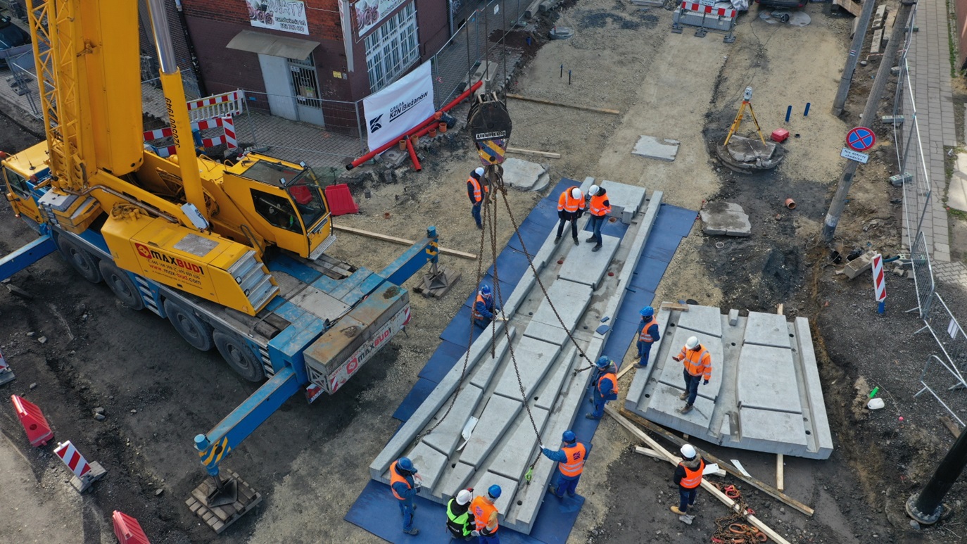 Prefabrykat integrujący podbudowę i nawierzchnię betonową ze stalową konstrukcją tramwajowego rozjazdu pojedynczego ze zwrotnicą ZT-116-3200 R50 został zabudowany w pierwszej połowie kwietnia br. na skrzyżowaniu ulic Powstańców Śląskich i Piekarskiej w Bytomiu, w ramach gruntownej przebudowy tej ostatniej. Pierwsze i tym samym prototypowe prace logistyczno-budowlane trwały około tygodnia, choć docelowy czas ostatecznej zabudowy takiego prefabrykatu ma mieścić się w przedziale 48-72 godzin.